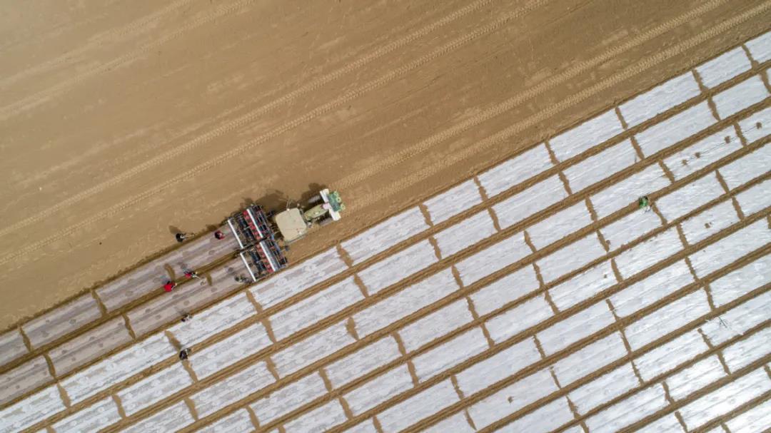 ▲ An autonomous crop-sowing vehicle plants cotton seeds on Friday in a high-yield demonstration field in Kuqa county in the Xinjiang Uygur autonomous region.