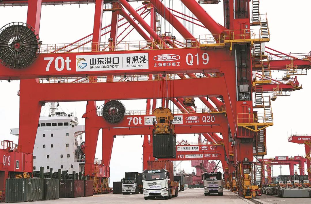 ▲ Cargo is loaded at the Rizhao Port, Shandong province. Zhang Jingang/For China Daily