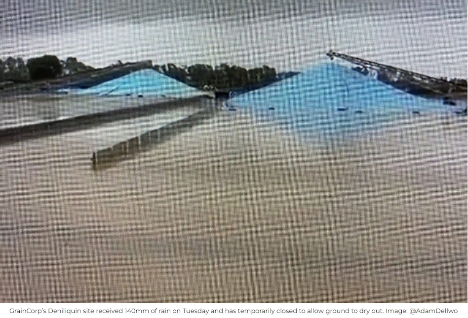 GrainCorp said the Tuesday night downpour caused flooding around the covered bunkers.