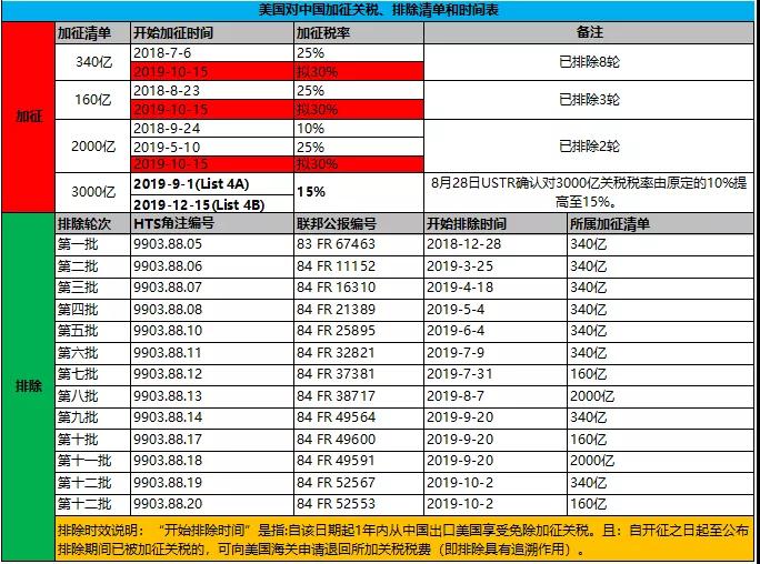 截止目前,美國(guó)共加征4個批次産品關稅清單,13個輪次豁免清單。下面我們先來(lái)捋一捋對應的加征關稅産品批次和豁免輪次以及對應具體(tǐ)執行稅率、清單和時間表如(rú)下: