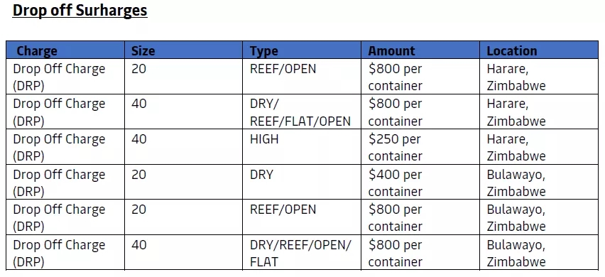 馬士基自(zì)2020年(nián)6月8日(rì)起在津巴布韋實施非管制貨物和管制貨物的卸貨費。