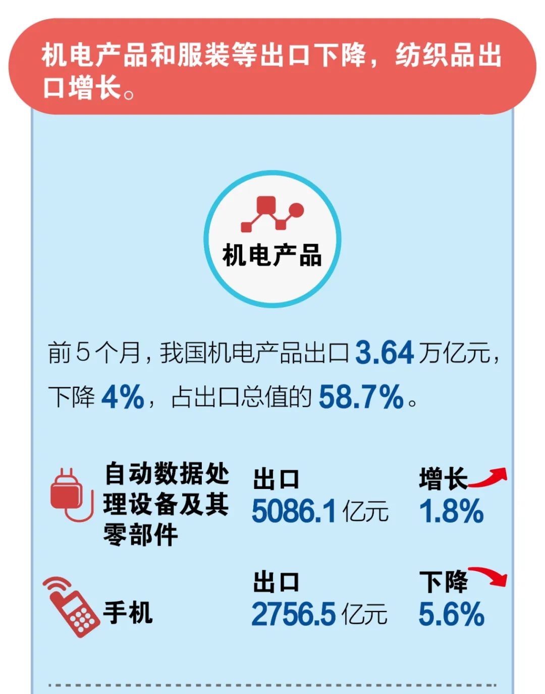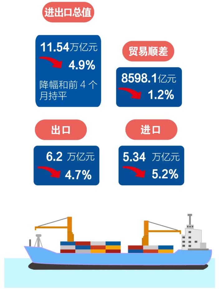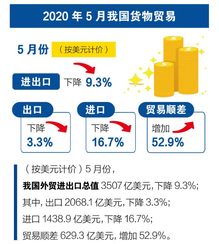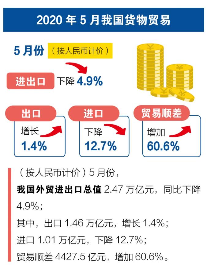 前5個月我國(guó)外貿進出口情況;5月份出口增長1.4%