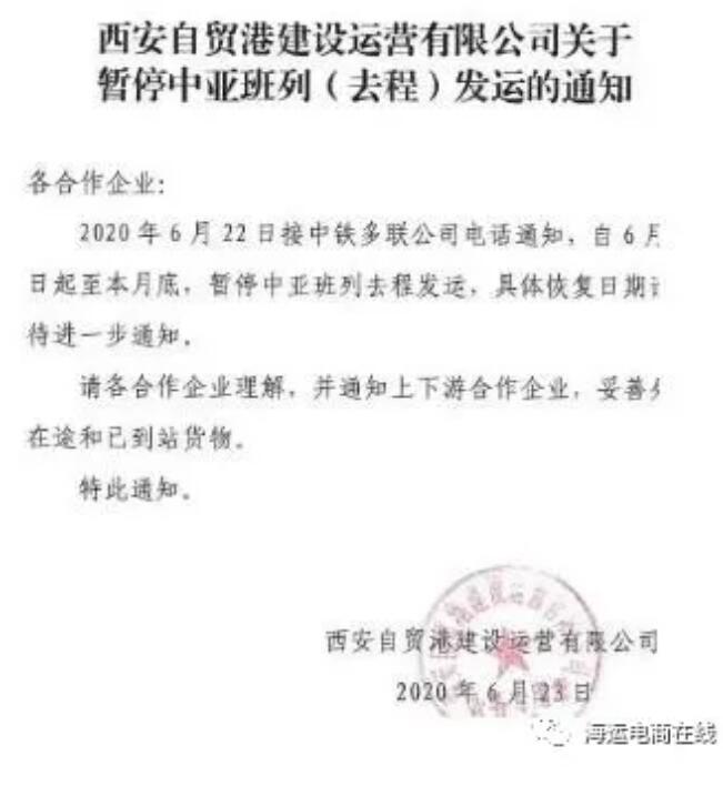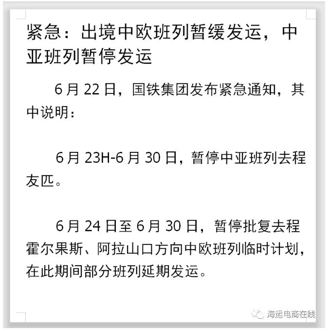 出境中歐班列暫緩發運、中亞班列去(qù)程暫停發運、