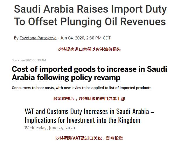 據中國(guó)駐沙特大(dà)使館經商處官網消息,沙特多次進口關稅的調整,因油價下跌和新冠疫情影(yǐng)響而受到巨大(dà)沖擊。沙特當地經貿人(rén)員(yuán)認爲政府提高進口關稅稅率背後的原因是多方面的,其中就(jiù)包括保護國(guó)内産業和增加國(guó)家财政收入等。