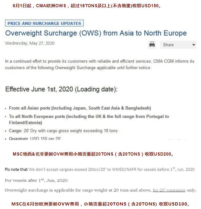 從(cóng)6月1日(rì)起,不少船(chuán)公司都(dōu)開始征收超重費
