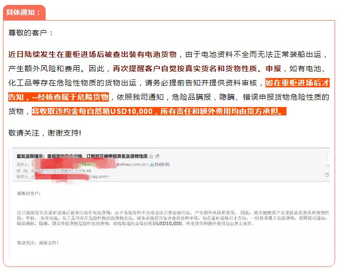日(rì)前有船(chuán)公司的發送郵件(jiàn)通知,再次重發提示:重視貨物安全運輸,訂艙時正确申報貨名及貨物性質。現在有很多物流公司爲了一己私利在沒有任何資料的情況下沖發純電池産品,導緻整櫃出不去(qù)并面臨高額罰款,這樣不但(dàn)影(yǐng)響了那條櫃裡(lǐ)面發普貨客戶貨物的時效,也影(yǐng)響到了普貨的安全性。這樣做對于那些發普貨的客戶來(lái)說(shuō)是極其不負責的。