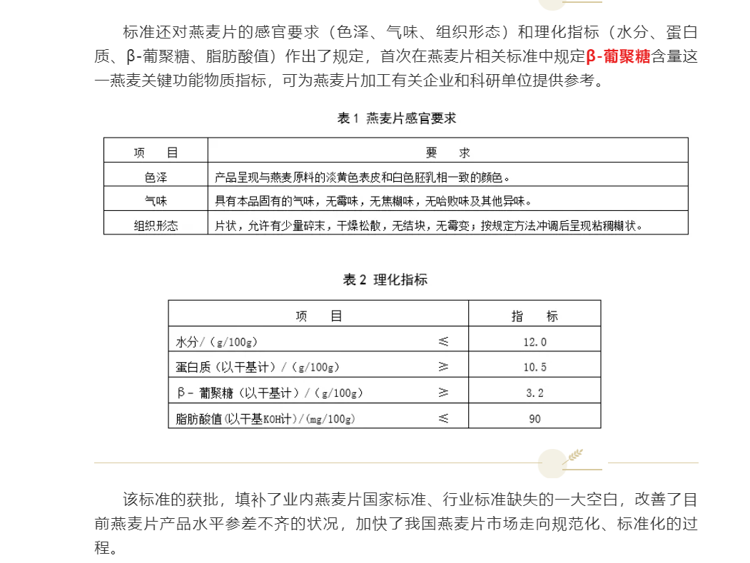 近日(rì),中國(guó)糧油學會官方網站(zhàn)發布了《中國(guó)糧油學會關于發布〈散糧集裝箱信息平台數據接口規範〉等6項團體(tǐ)标準的公告》,由中國(guó)糧油學會提出并歸口,由陝西師(shī)範大(dà)學、中國(guó)農業大(dà)學、桂林西麥食品股份有限公司、汕頭市金味食品工(gōng)業有限公司、内蒙古塞寶燕麥産業有限公司等單位承擔,由胡新中、董銳、李再貴、廖麗麗、許凡茜、李璐、李宇負責起草的團體(tǐ)标準T/CCOA 38—2021 《燕麥片》(以下簡稱“标準”)成功獲批,并将于2021年(nián)8月1日(rì)起正式實施。