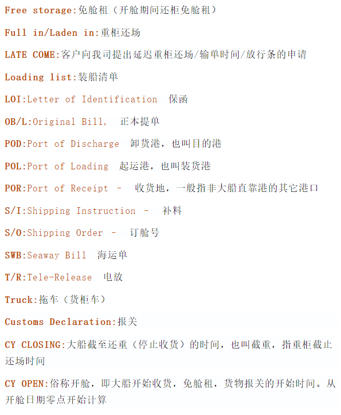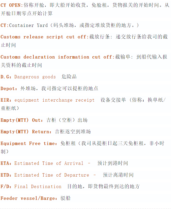 貨代、拖車、報關等相(xiàng)關英語解釋