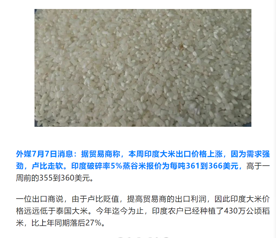 印度大(dà)米出口價格上漲
