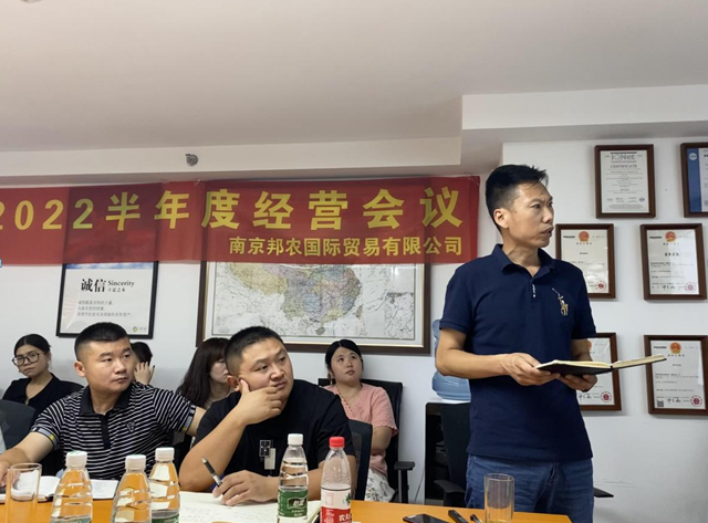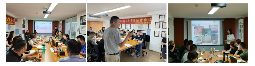 7月23日(rì)會議(yì)期間,就(jiù)國(guó)内貿易部經理(lǐ)潘如(rú)江及泸州、青島、南(nán)通、廣州、天津辦事(shì)處代表于銷售部進行2022年(nián)上半年(nián)度的銷售業績、行情走勢、價格分(fēn)析、采購(gòu)計(jì)劃等,做出了總結性的計(jì)劃及下半年(nián)的工(gōng)作(zuò)規劃展開詳細的彙報。