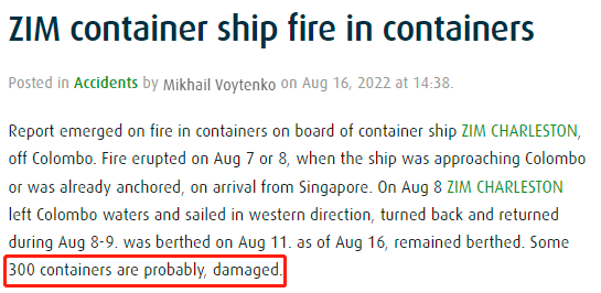 8月8日(rì),以星旗下一艘運力達8586TEU的集裝箱船(chuán)在科(kē)倫坡附近海域失火(huǒ),事(shì)故可(kě)能導緻大(dà)約300個集裝箱受損。