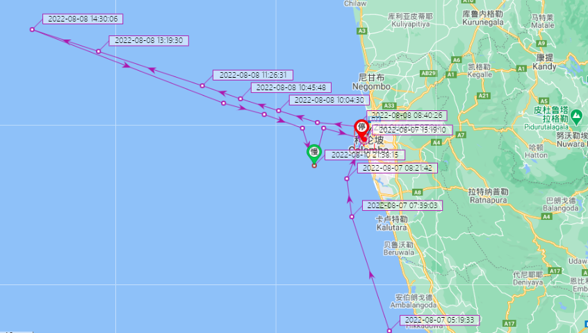 根據AIS船(chuán)舶定位顯示,截至8月17日(rì),該船(chuán)仍在科(kē)倫坡港處于錨泊狀态。原船(chuán)期預計(jì)19日(rì)抵達那瓦希瓦港,目前來(lái)看(kàn)船(chuán)期已嚴重延誤。