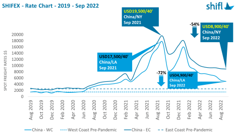 “金九銀十”的說(shuō)法在全球海運業曾經也同樣适用,不過在今年(nián)的傳統旺季,海運市場卻遭受陣陣寒流。主要海運航線的運價“斷崖式”暴跌,去(qù)年(nián)一飛沖天的海運市場徹底“涼”了,現在海運市場已經從(cóng)“賣方市場”轉變成爲“買方市場”了。
