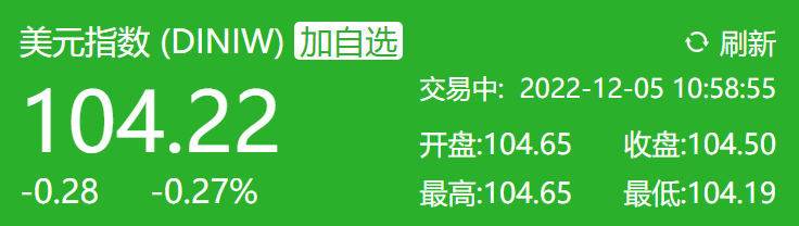 與此同時,5日(rì)早間,美元指數繼續走跌。截至發稿,美元指數報104.22點。11月,美元指數已累計(jì)貶值5.03%。
