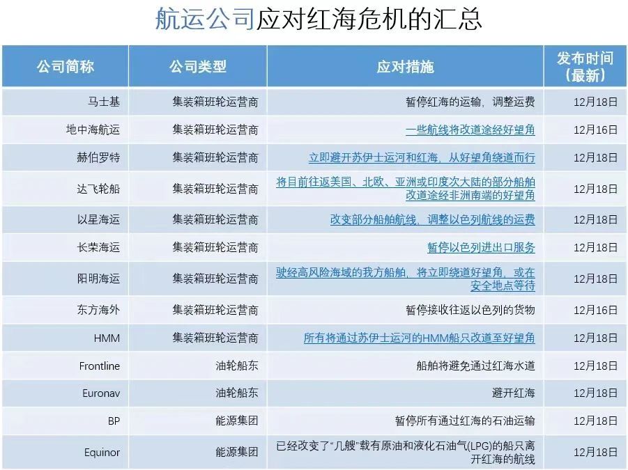 航運公司應對紅(hóng)海危機(jī)的最新動态如(rú)下圖: